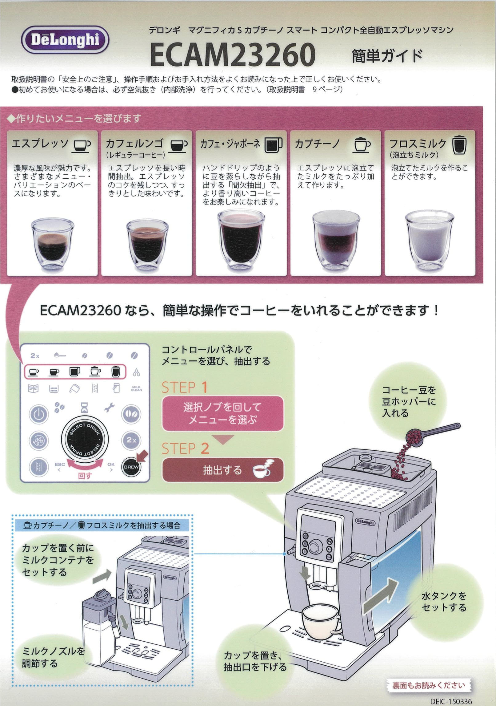 ミルクコンテナ×1 コーヒー粉の計量スプーン×1 取扱説明書×1 |