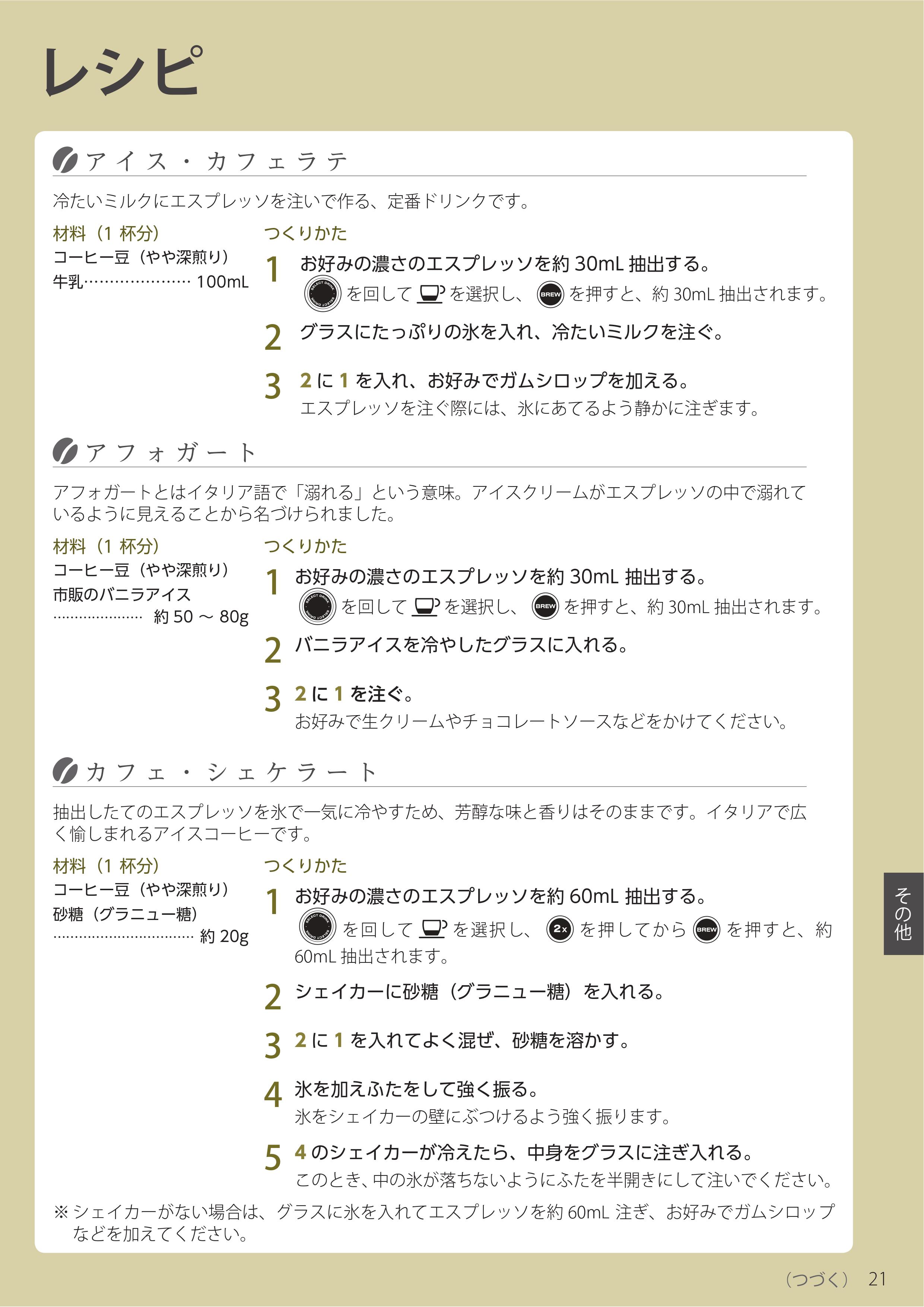 通常、ダブルサイズ、カフェジャポーネは、本製品の抽出モードの種類です。 |